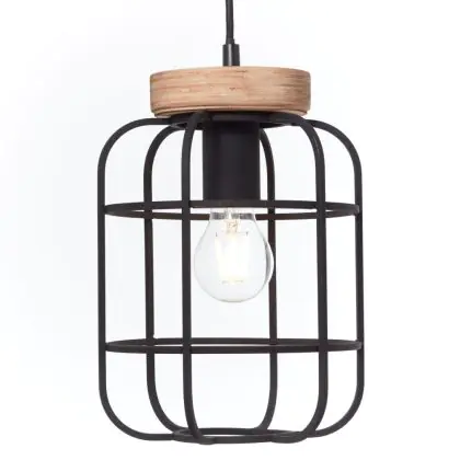 Brilliant Gwen Luce Pendente Metallo Legna Nero | Adatto per 3x E27