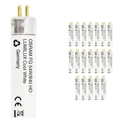 I Confezione Multipack 20x Osram Lumilux T5 FQ HO 54W - 840 Bianco Freddo | 115cm sono tubi fluorescenti di dimensioni inferiori rispetto ai T8 / TL-D. Si prega di controllare sempre la potenza e la lunghezza del tubo, in quanto sono correlati. Nel caso in cui si desideri effettuare una sostituzione di un tubo esausto è necessario acquistare un tubo con le stesse caratteristiche tecniche in termini di dimensioni e potenza. Per un elevato risparmio energetico si consiglia di scegliere soluzioni a LED..