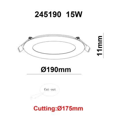 Descrizione Downlight LED UltraSlim 15W 1200lm 110D - 840 Bianco Freddo | 190mm - Ritaglio 175mm