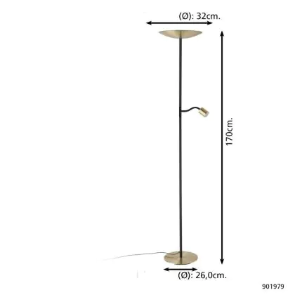 Eglo Lampada da terra Conivarino Acciaio Brushed Ottone, Nero 30.5W 3150lm - 827 Bianco Molto Caldo | Dimmerabile