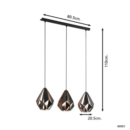 Eglo Luce Pendente Carlton 1 Nero, Rame | Adatto per 3x E27
