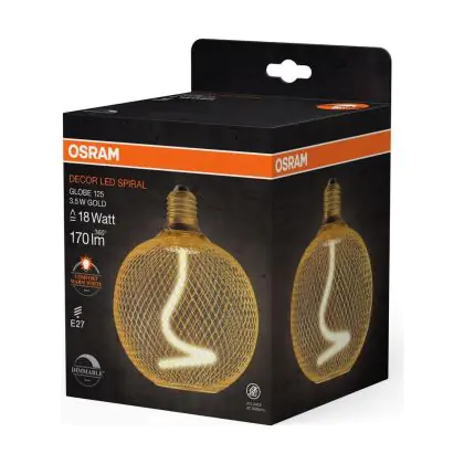 La Osram Decor Spiral E27 Globe Filamento Oro 3.5W 170lm - 818 Bianco Molto Caldo | Dimmerabile - Sostitutiva 15W è la perfetta sostituzione per la tua lampada convenzionale 15W con attacco E27 grazie alla sua tecnologia LED. Passare a LED ti offrirà tanti vantaggi!