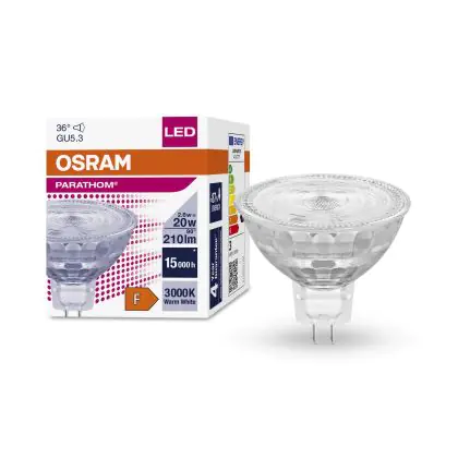 La Osram Parathom Faretti LED GU5.3 MR16 3W 230lm 36D - 830 Luce Calda | Sostitutiva 20W è perfetta per la sostituzione della classica lamapda alogena20W GU5.3 con colore della luce 830 Luce Calda. Questa lampadina ha una forma Spot con un diametro di 50mm. La distanza tra I due pins è di 5.3mm. Queste lampade hanno bisogno di un trasformatore poiché operano a 12V. I trasformatori possono essere trovati in "Accessori" su questa pagina. Qual’è il trasformatore adatto? Dipende dal numero di lampade che si vuole installare. Il nostro servizio di vendita e assistenzati ti aiutera nella scelta. Passare a LED offre molti vantaggi!