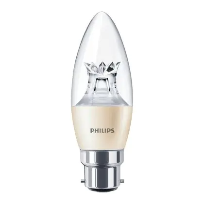 La Philips MASTER LED Candela B22 Corona Piegato-tip Chiara 4W 250lm - 822-827 Dim To Warm | Dimmerabile - Sostitutiva 40W è la sostituzione perfetta per la tua lampada convenzionale 40W B22. Sostituire con il LED ti offrirà molti vantaggi.