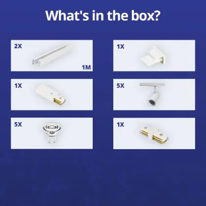 Descrizione Set completo 1-Fase Rail 2 Metro Bianca | incl. 5x Faretti + GU10 2700K 3W Dimmerabile + Tappo Di Chiusura, Connettore di Alimentazione e I-Connettore